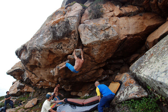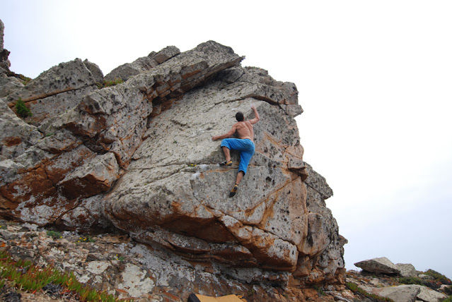 In summer, when the temperatures rise and bouldering at Serra de Sintra gets unberable, or the access to the mountains is closed by authorities due to fire hazard, the coastal areas become an excelente alternative for bouldering. Usually local climbers do bouldering sessions, in the late summer afternoons at Mexilhoeiro, Cascais (a limestone sector by the sea). But Cabo da Roca can be also a good alternative.