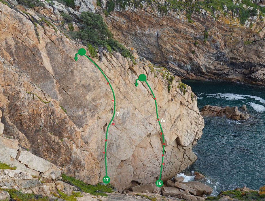 A handful of medium-grade routes on clean, quality granite facing west above the sea. A must-visit for climbers who enjoy placing gear.